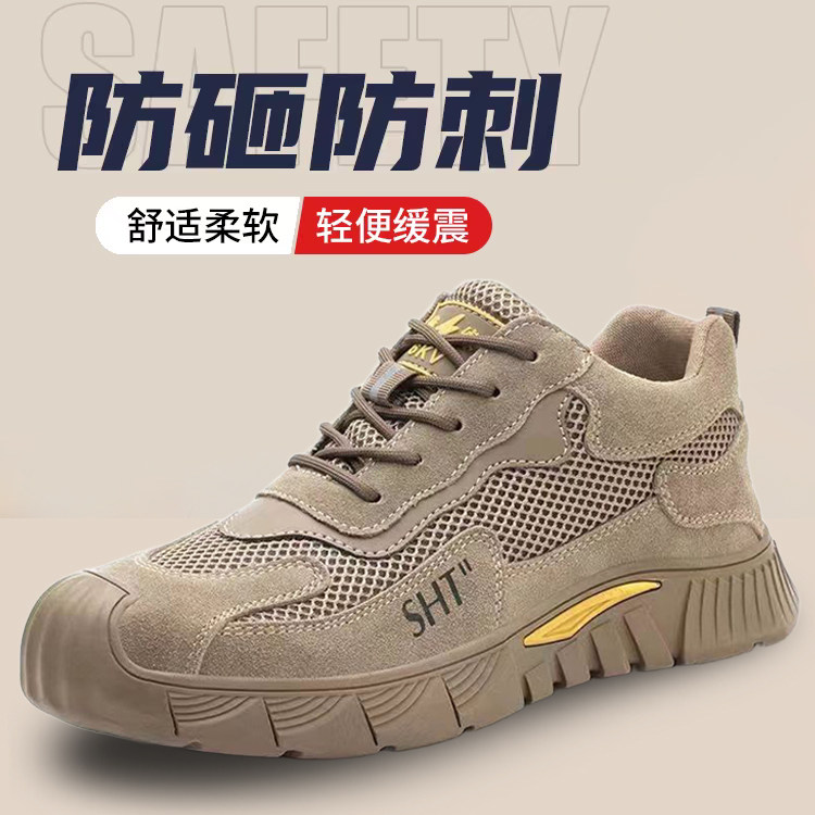 メンズ労働保護靴 夏用通気性のあるスチールトゥ、耐砕・耐刺し、光と摩耗に強いソリッドソール ソフトソール作業安全シューズ