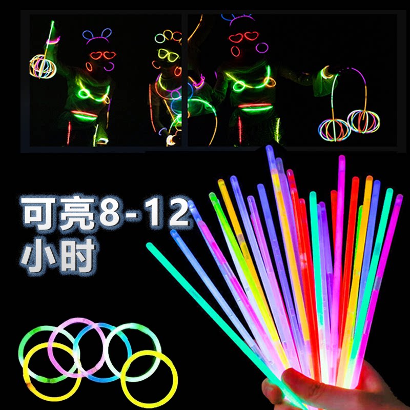 グロースティックは服に貼り付けられたり、暗闇で光る色、暗闇で光るブレスレット、子供用の暗闇で光るおもちゃ、屋外キャンプなどに使えます