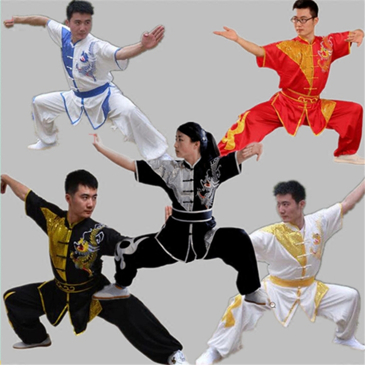 大清:刺繍龍武術服、男女の大人・子供の体力検査の色着、長拳南拳競技用練習服、太極拳の服
