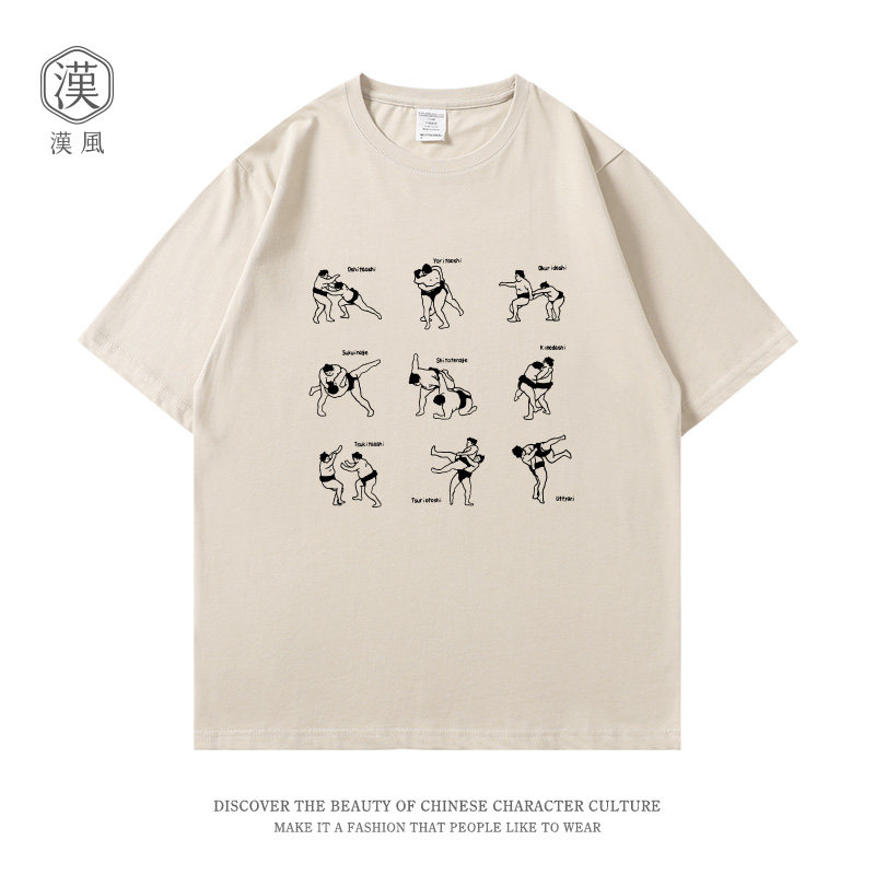 日本風相撲のファンプリント、ヴィンテージ半袖Tシャツ、男女用、夏のスポーツ、ゆったりとした綿の大きめ半袖