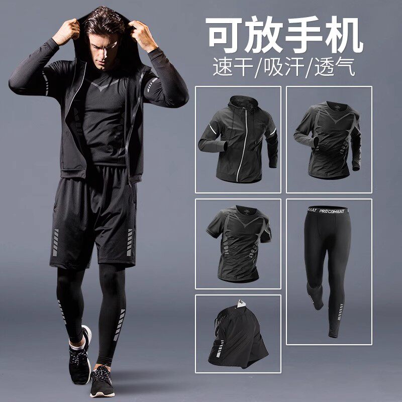 男性用のランニングスポーツセットは、携帯電話、スプリングマラソン、プロの朝のランニングウェア、クイックドライのジムトレーニングウェアを装着できます