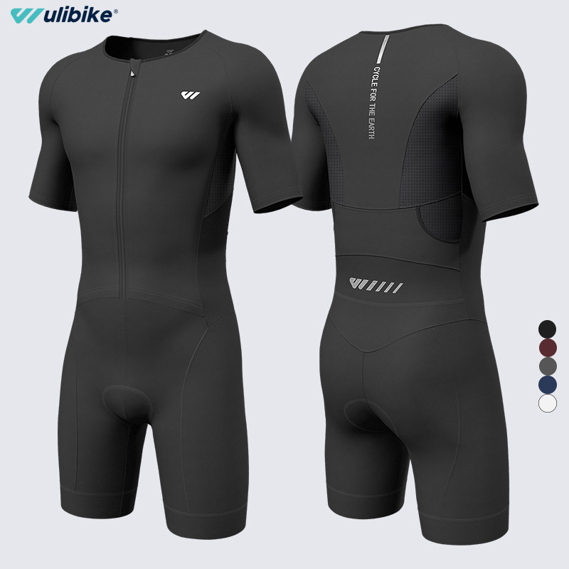 Wulibikeメンズトライアスロンスーツ、半袖の春夏服、高弾力性と速乾性のワンピースサイクリングスーツ、タイトなトライアスロンスーツ