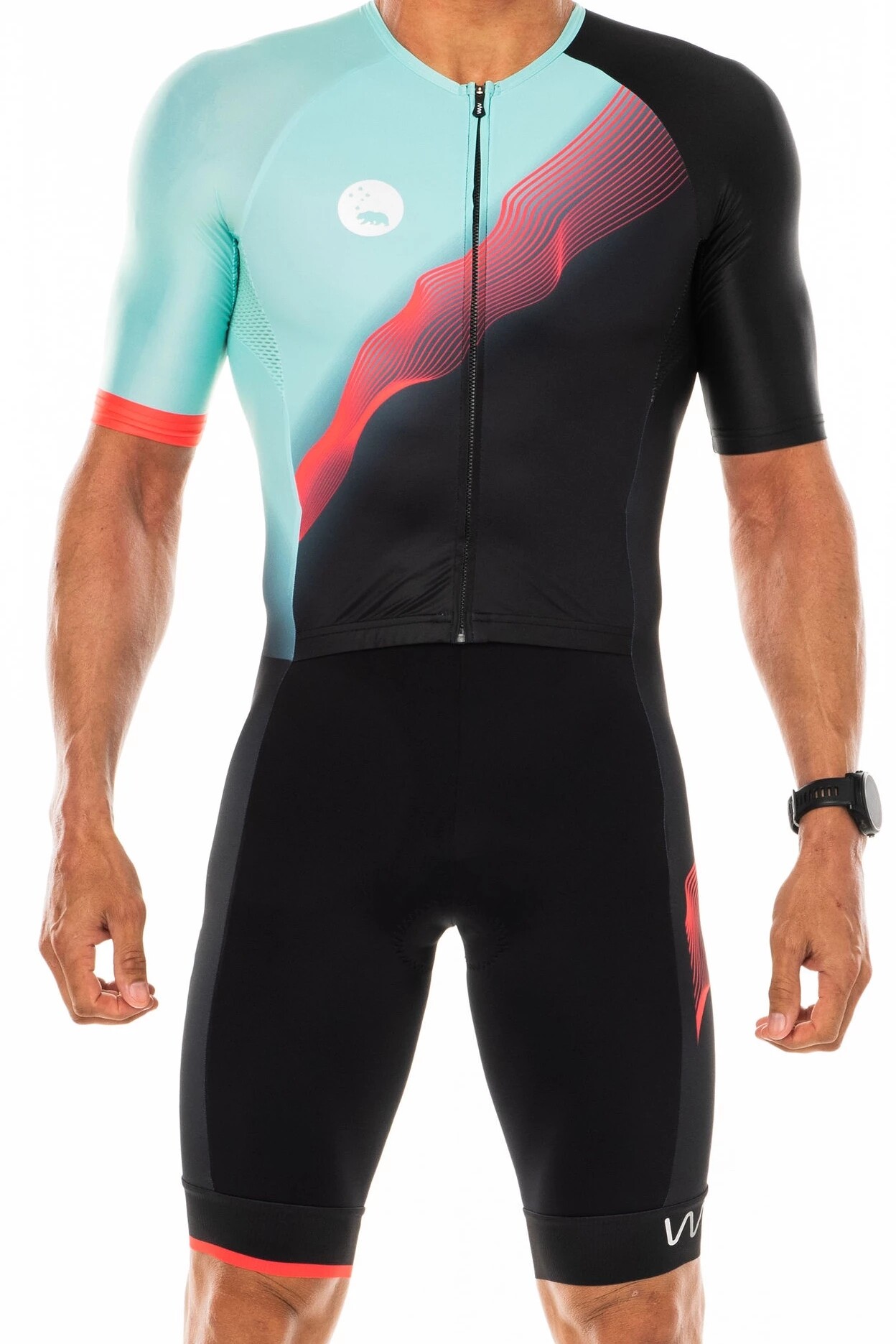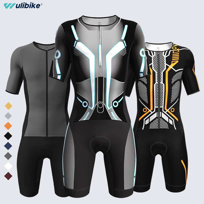 ウリバイクはウォーレコードの男性トライアスロンスーツを制作。半袖で高弾力性、速乾性、ぴったりとしたフィット感のあるワンピーストライアスロンスーツ