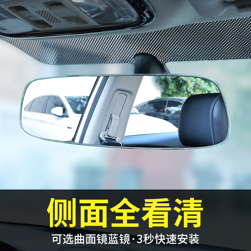 室内のリアビューミラー、広視野、アンチグレア、車内には広角曲面ミラーに改造されたリバースミラーの補助ミラーが装備されています