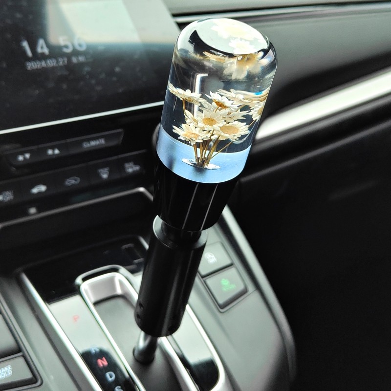 JDMカーモディファイドギアヘッド、小さなデイジーフラワー型ギアハンドルバー、ギアレバーを通したオートマチックマニュアルトランスミッション、ラケットヘッド