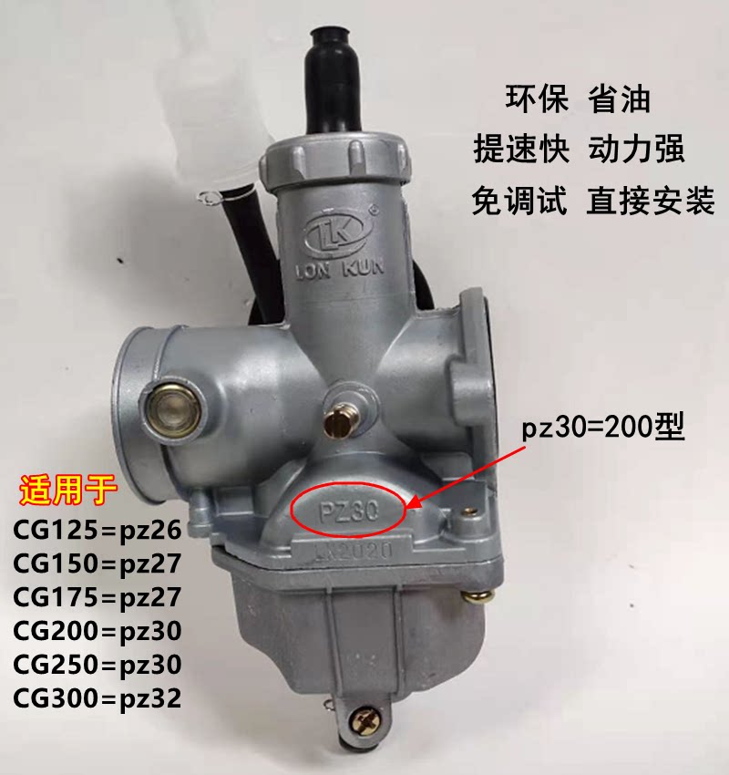 オートバイ CG125 150 175 200PZ26 宗神三輪式 ジェネラル省エネ 燃料節約キャブレター