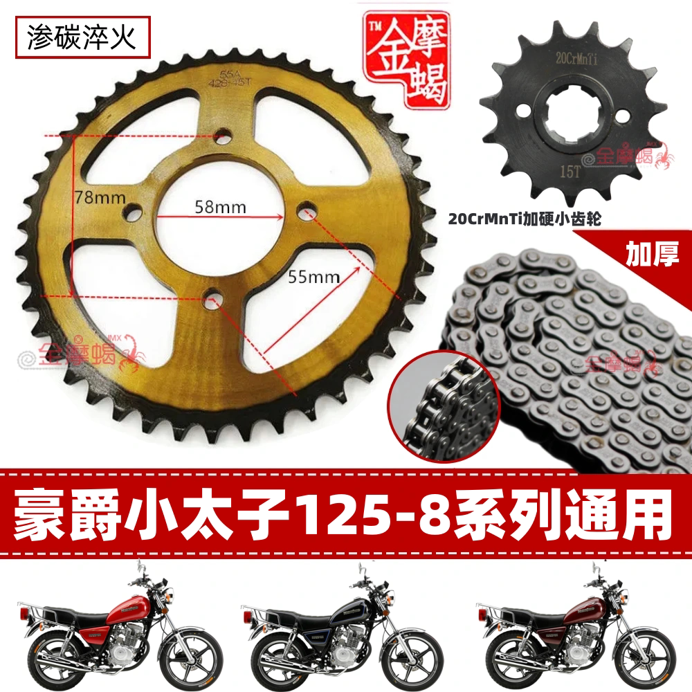 オートバイチェーンスプロケットHJ125プリンスカーマネー、江龍サイズフライングチェーンギアチェーンディスク150セットに適用