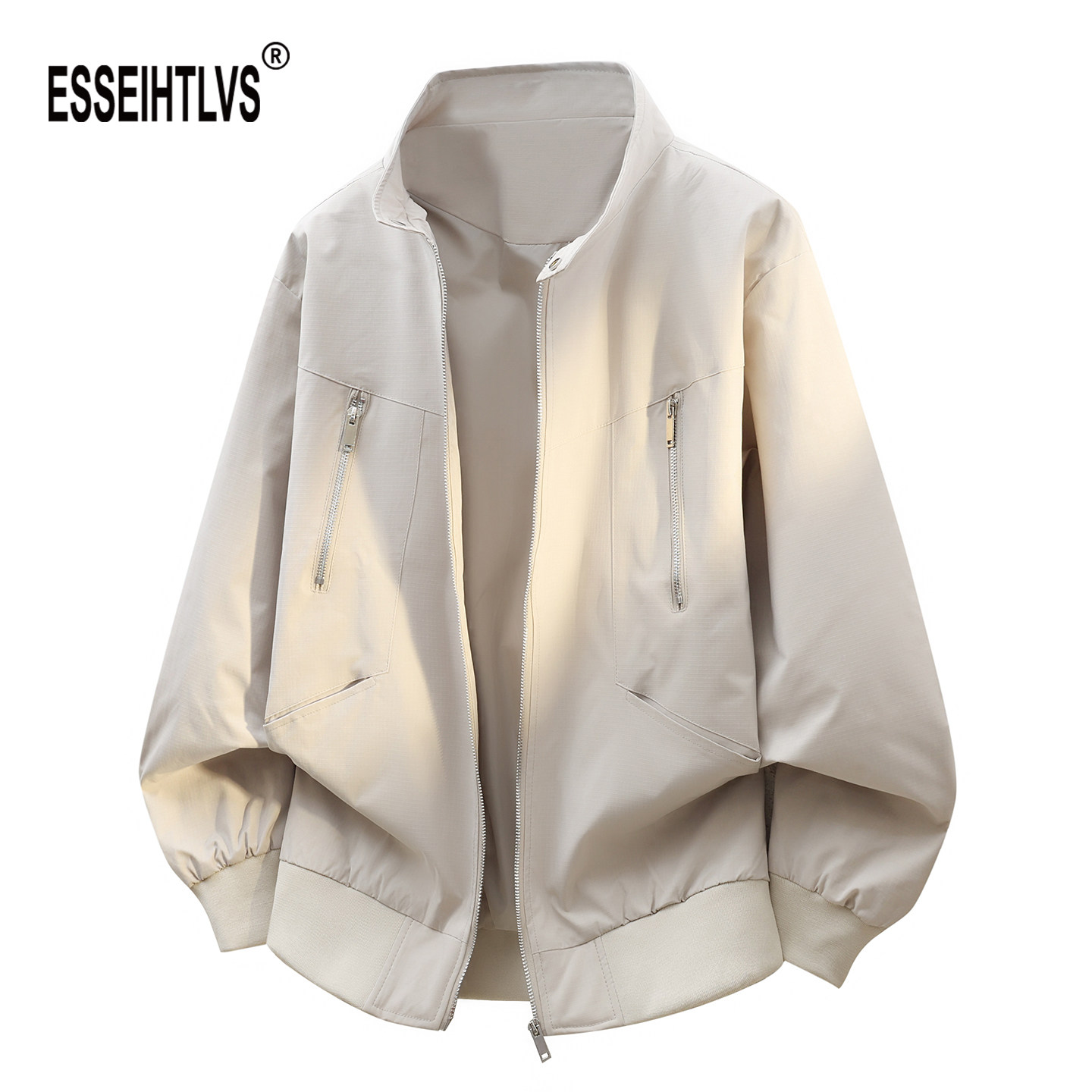 ESSEIHTLVSアメリカンハイストリートのスタンドアップカラーワークウェア、ボンバージャケット、メンズトレンディブランドのジッパーデザイン、センスジャージジャケット