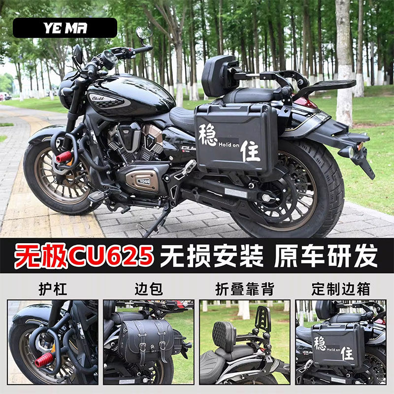 インフィニットCU625 改造 ガードサイドバッグ、折りたたみ式バックレスト、リアテールラック、アンチフォールバンパーサドルシフトレバーアクセサリー