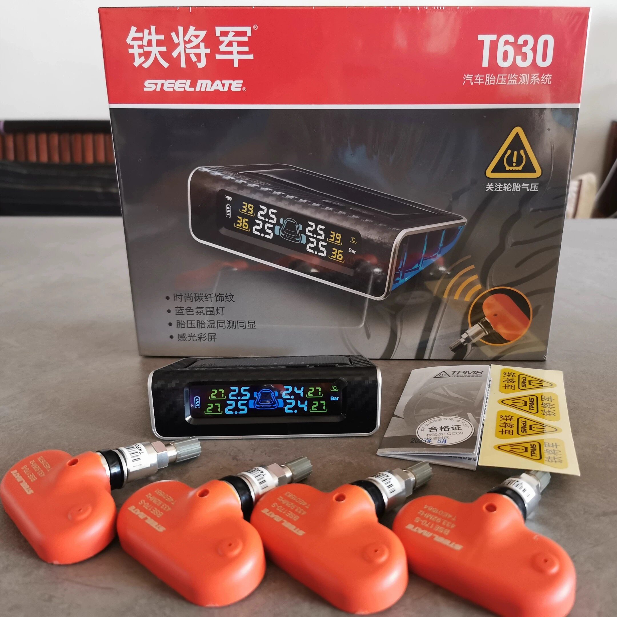 アイアン・ジェネラルソーラータイヤ空気圧モニター、インテリジェントワイヤレス内蔵スマートカラースクリーン、カーボンファイバー装飾T630検知器